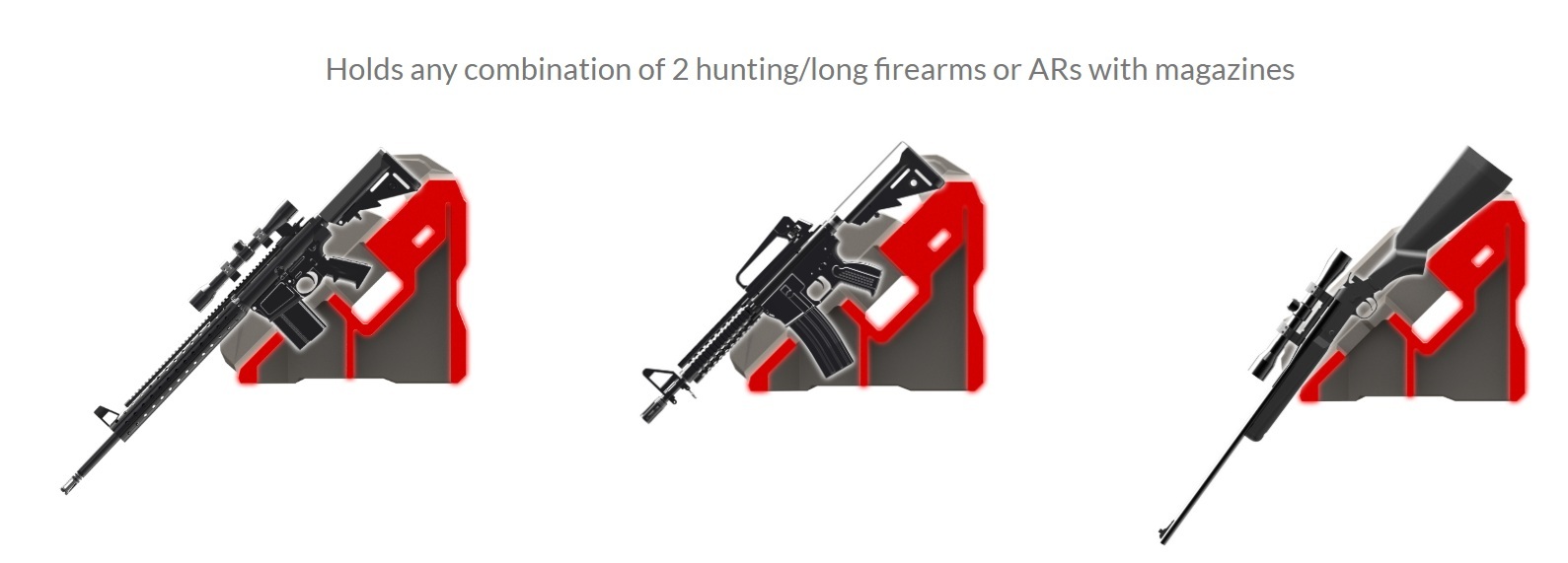 The ICOS 2 AR is an innovative gun holder solution that allows an owner to carry up to 4 guns in their UTV securely and away from the elements while providing quick access to them all. It holds 2 hunting/long firearms just like the original ICOS, however this unit is better equipped to hold ARs with magazines as well as 2 handguns and 2 extra magazines (Pistol & Magazine Holsters Add-On Kit sold separately).